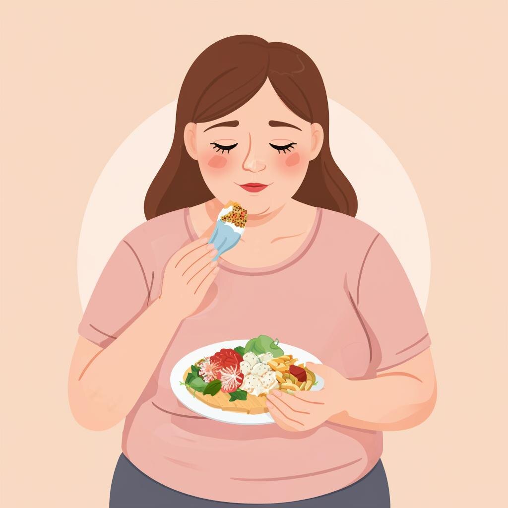Суть: Регулярные эпизоды неконтролируемого поглощения большого количества пищи (быстро, до дискомфорта), без последующих "очистительных" действий, как при булимии. Сопровождается сильным стыдом, отвращением к себе и депрессией.