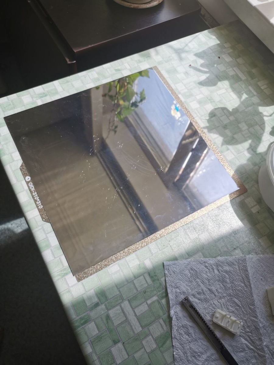 Лист нержавейки AISI430 0,5мм толщиной, 300*300 мм размером, зеркальный с обеих сторон. Куплен на ВБ за 340р, произведен в Китае.