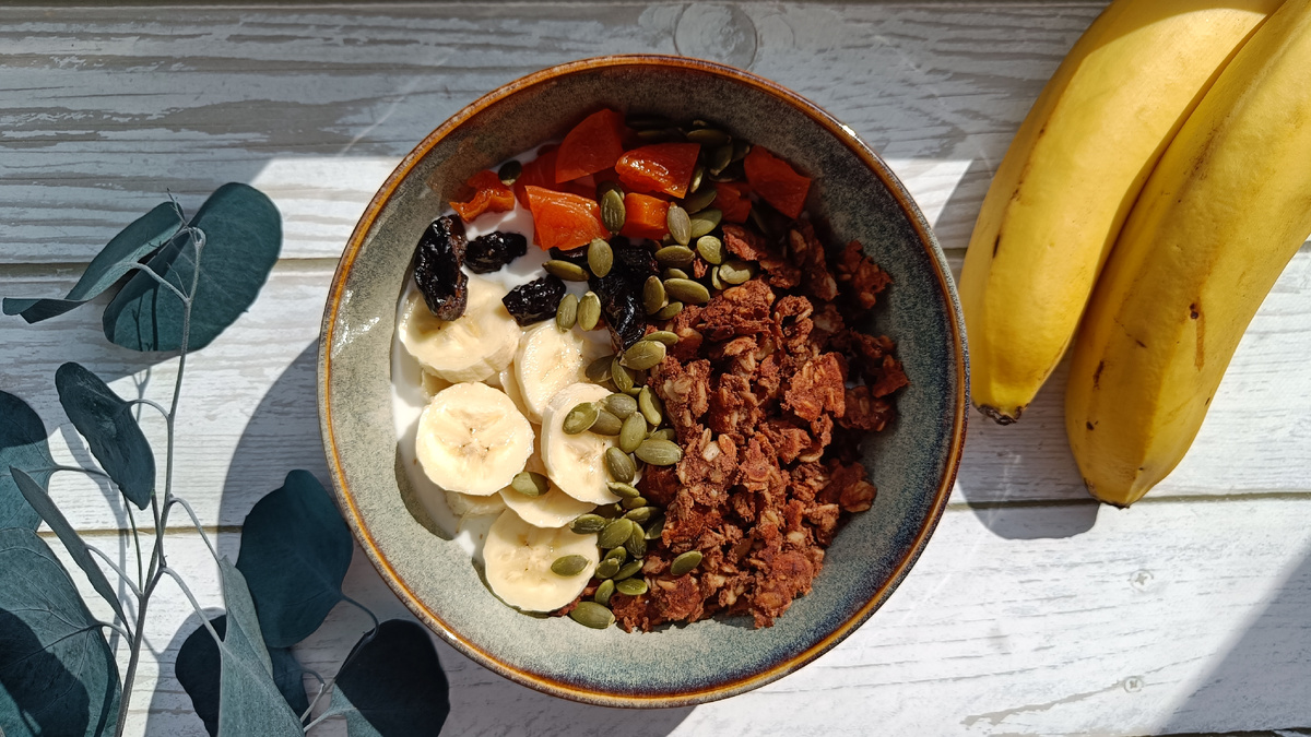 Шоколадная бананово-кокосовая гранола — ароматный десертный завтрак