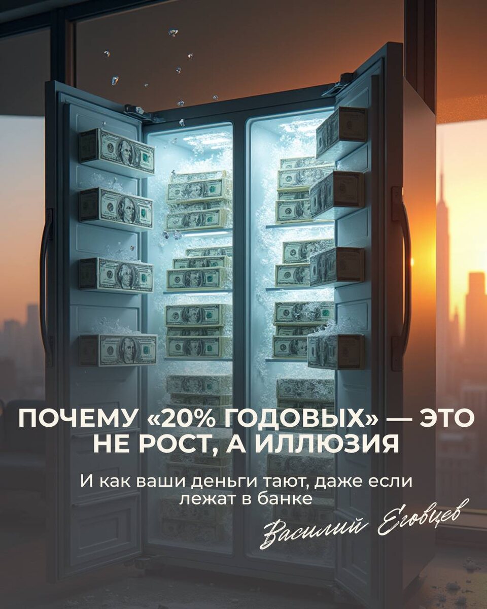 А вы куда положили свой лёд? ——— Вот что на самом деле происходит в банковской системе: По официальным данным на май 2025 года: • Только 0,2% россиян — это 2 человека из 1000 — держат на банковских счетах больше 10 миллионов рублей. • Но именно эти 0,2% контролируют 31,1% всех вкладов страны. То есть треть всех депозитов — у микроскопической доли населения. Остальные? • Средний размер вклада (если не учитывать тех, у кого меньше 10 тысяч рублей) — 700 000 ₽. • Миллионы людей держат на счетах суммы, которые едва дотягивают до одной зарплаты в регионе. ——— Теперь подумайте вот о чём. Когда вы слышите: «Скоро заблокируют вклады», «Деньги изымут», «Банки закроют» — спросите себя: у кого именно их будут изымать? У тех, кто накопил 42 тысячи? У пенсионера с карточкой «Мир» и вкладом на отпуск? Или у пары тысяч человек, чьи деньги — это уже система? ——— Теперь про “выгодные” ставки: Да, банки сегодня дают до 20% годовых. Но только на один год. На два — уже 15%. На три — и вовсе б