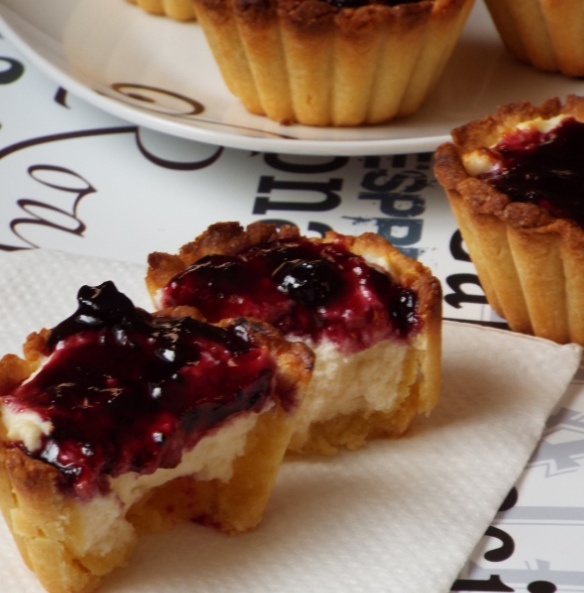Рассыпчатая корзинка, а внутри - нежный творожный крем, сверху - слегка кислое варенье из смородины.