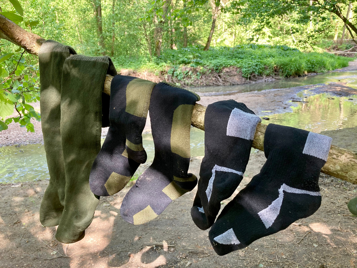 Теперь поговорим о некоторых тонкостях, связанных с применением данных носков. Хоть их мембрана и защищена от внешнего воздействия, ходить в них по камням и земле нельзя, и малейший прокол приведёт к протеканию воды. Обувь, которая будет надета поверх них, должна отличаться от обычной в сторону быстрой высыхаемости, по типу вышеописанных Jungle Boots, иначе плотная кожа обычных кроссовок или башмаков будет как бы втирать попавшую внутрь влагу в стенку носка, что станет причиной мокрых ног.