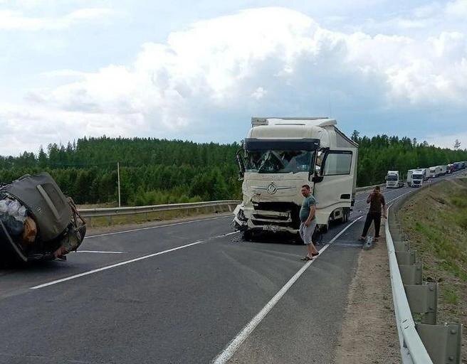 Лобовое столкновение фуры и легковушки в Забайкалье