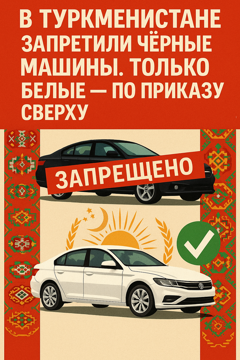 📍 В Туркменистане — это реальность. С 2017 года в столице Ашхабаде начались массовые эвакуации чёрных автомобилей с улиц.