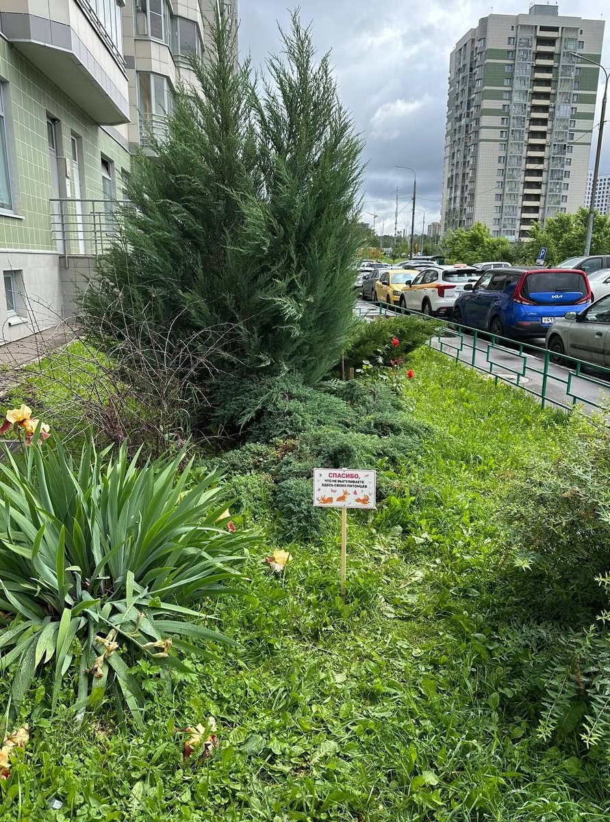 Современные и красивые таблички о запрете выгула появились на улице Кедрина в Мытищах👌 🟢Вот такие они должны быть везде. И цветы целы и собаководы рады - сообщают подписчики