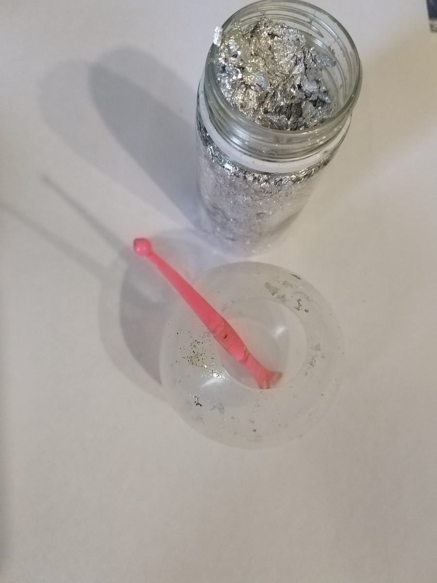Тонкая , как пёрышко , золотинка ... А ещё она такая же воздушная и стараешься не дышать ,чтобы не улетела. Я её втираю в молды грубой кистью , или ещё лучше , пластиковым пластилиновым стеком. Затем развожу эпоксидную смолу с 10 каплями чёрного красителя , тщательно вымешиваю пять минут и заливаю в молд. Вот поталь втёрта внутрь пирамиды , мне очень нравятся эти полосы , так получается когда грубо втираешь её стеком , возникает интересный рисунок. Ощущение , что пирамидка выточена из камня с интересным рисунком , у меня так и спрашивают :"Что за камень?" И тогда я начала искать в интернете , оказывается есть: бронзит , черный авантюрин , нуумит , лавовый камень , медный колчедан . Короче , можно сделать прожилки потали по-разному и будет совершенно другой "камень". Если втереть поталь в шар получится планета! В эпоксидную смолу вмешиваю 3 капли синего красителя и вливаю в молд. Не знаю что у меня получилась за планета , какой-то двойник Земли , там наверное есть своя Россия и Америка