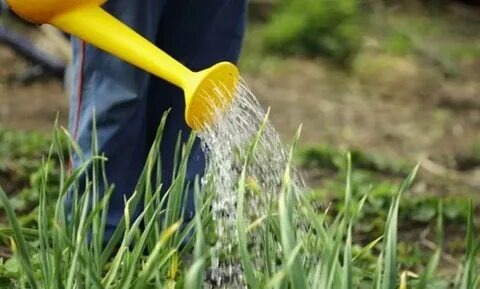 - Полейте грядки солевым раствором под корень (примерно 3–5 л на 1 м²) из лейки.