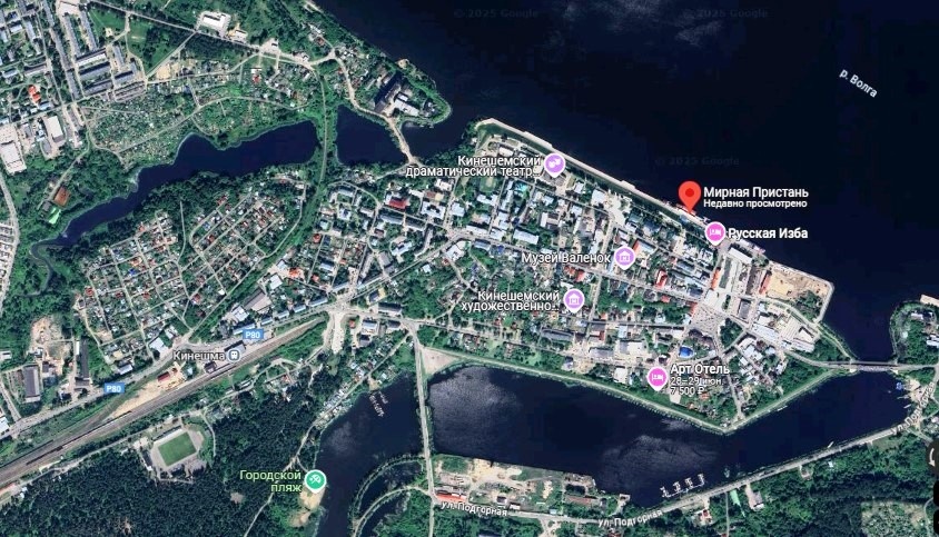 Отель находится в самом центре Кинешмы. На Волге. Кстати, Кинешма (вернее, её центр) расположена на полуострове, образованном Волгой и двумя её притоками - Кинешемкой и Казохой.