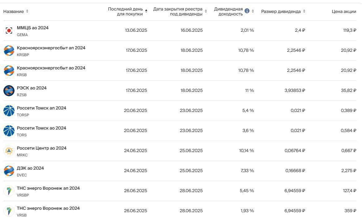 Дивиденды на июнь