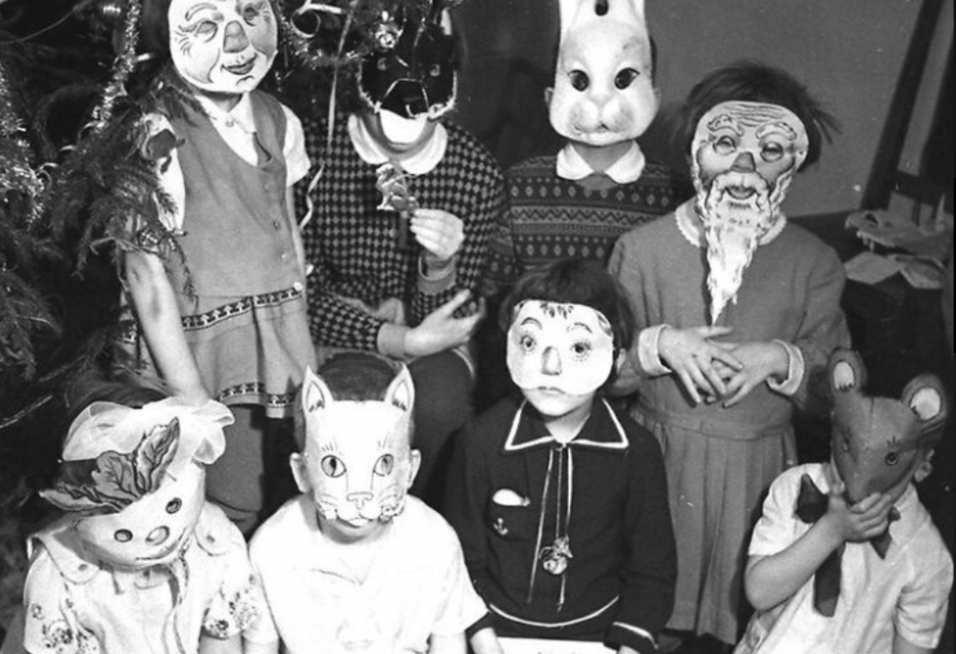 На фотографии запечатлены советские дети, отмечающие Новый год в 1969 году. Ребята одеты в картонные маски, среди которых можно заметить зайца, лисицу, старичка-лесовичка и множество других любимых сказочных героев. Хотя эти маски кажутся несколько примитивными по современным стандартам, в то время они были неотъемлемой частью праздника, создавая атмосферу волшебства и радости.