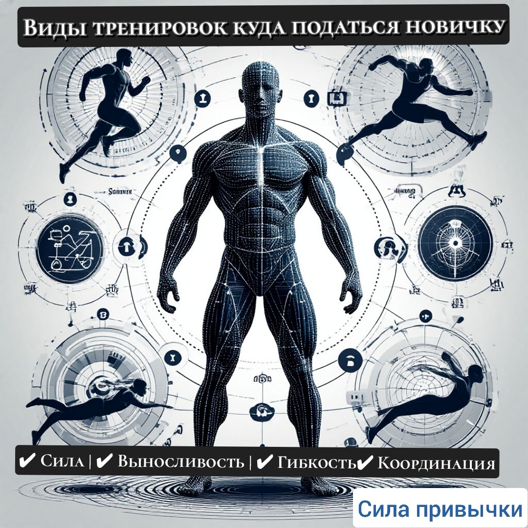 Виды тренировок куда податься новичку?! 🔥 Зачем мешать кардио с силовыми? Чтобы жизнь не казалась монотонной! 📌 Суровая правда: Ваше тело умнее вас. Если месяц делать одно и то же — оно включает режим "экономии энергии" (читай: "халявлю"). 🔍 Почему разнообразие — это не прихоть, а необходимость? 1️⃣ "Плато — не планета, а ваша зона комфорта" - Мышцы адаптируются за 4-6 недель→ прогресс встаёт. - Решение: Шокируйте их! Силовые + функционалка + йога = тело в тонусе. 2️⃣ "Перетренированность — это когда вы ненавидите спорт, а он вас" - Бесконечные кроссы или жим лёжа без вариаций → перегруз одних мышц + травмы. - Фишка: Чередуйте интенсивность. Сегодня — тяжёлая становая, завтра — плавание. 3️⃣ "Скука убивает мотивацию быстрее, чем отсутствие результатов" - 3 месяца одного и того же → "Ой, что-то живот болит, не пойду". - Лайфхак: Сделайте игру! Неделя — сила, неделя — выносливость, неделя — мобильность. 💡 Примеры удачных миксов - Понедельник: Силовая (база) →