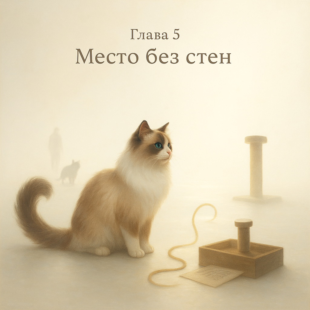 В углу возникла когтеточка. Не обычная. Сделанная из веток воспоминаний. Я провела лапой — и вспыхнул кадр: Куня спит, свернувшись в шар, у окна. А я смотрю на него. Это не было прошлым. Это было “сейчас”, только в другом слое.