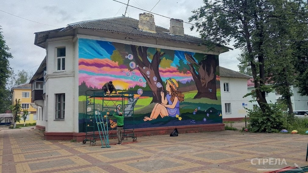 ▫️В городе Сельцо Брянской области стену двухэтажного дома украсило милое и яркое граффити.