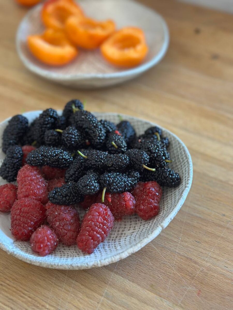 В этом году по-настоящему шикарный ужин выглядит как то так Ибо цены на ягоды улетели просто куда то в космос😐 Но я все равно не смогла пройти мимо шелковицы. В детстве лето мы часто проводили с бабушкой и дедушкой в частном секторе на азовском море и там этой шелковицы повсюду тьма тьмущая. Ешь не хочу. Так что мы с сестрой 🤝 залезали на первое попавшееся дерево, вообще не важно чье оно, просто залезаешь и ешь прямо с ветки А потом с черными от сока шелковицы губами, сытый и счастливый идешь дальше кататься на великах А теперь это счастье 130₽ за 100гр 🤡 Я даже не представляю, какими объемами мы тогда ее съедали на этих деревьях
