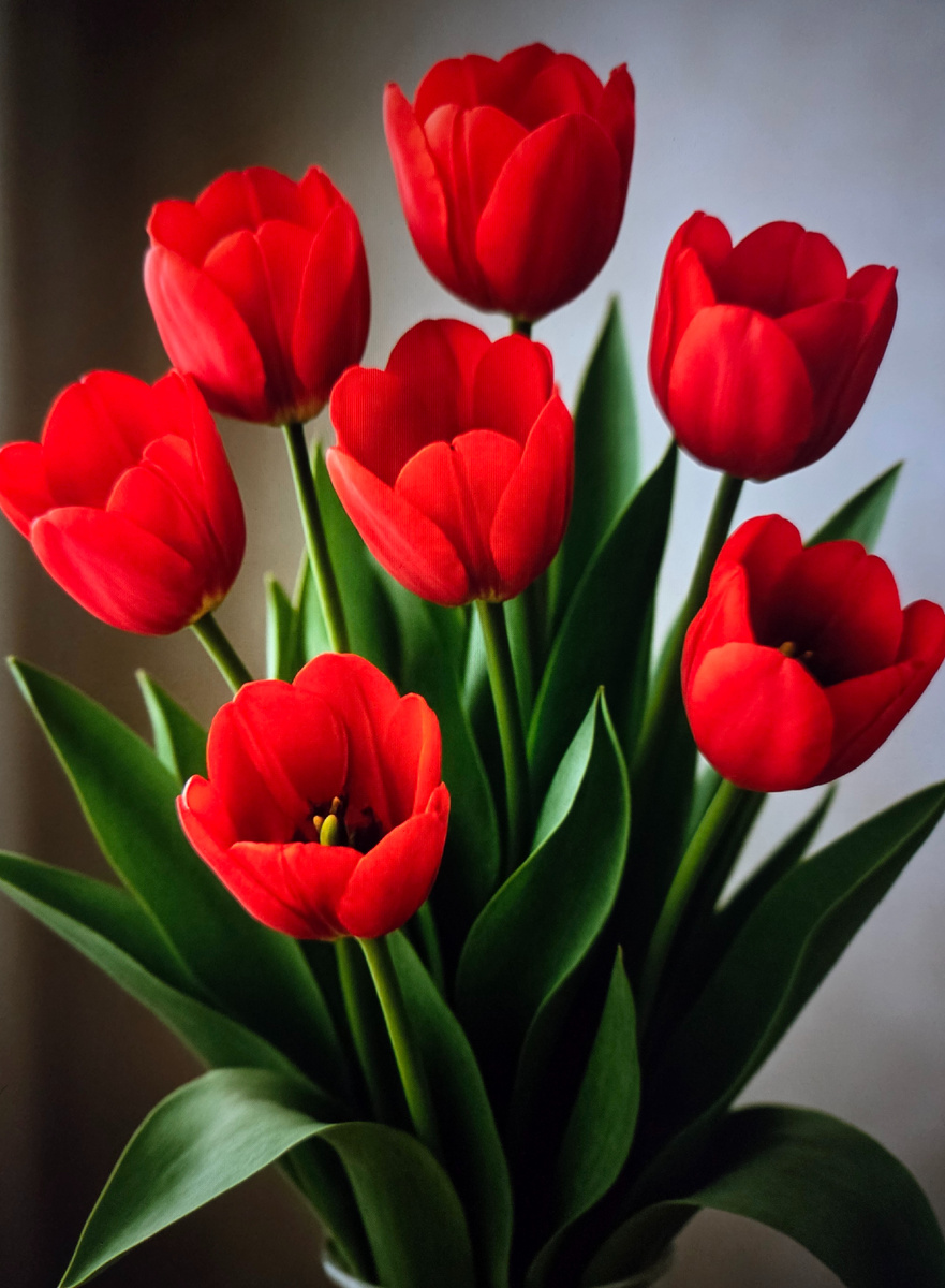 - Красные тюльпаны: говорят о страстной и глубокой любви, часто ассоциируются с признанием в любви.