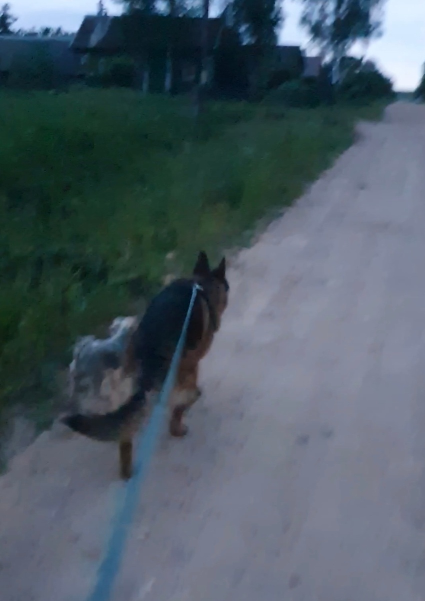 Июнь подарил нам четыре выходных дня и плохую погоду. Но мы все равно решили поехать в деревню, когда ещё будет столько выходных? И рванули)))) Ехали по платной дороге, постояли в платных пробках, но до деревни добрались за 3 часа. Сразу пошли размять лапы. А потом домой и спать, набираться сил на новый день) На следующий день, выспавшись, мы пошли гулять в поле. На самом деле собак вывела моя мама ещё в 6 утра, когда папа уходил на работу. Поэтому я смогла поспать до 9))) По пути до поля в деревьях я увидела местную кошку. Хорошо, что собаки не увидели. А кошка наблюдала, как мы проходим мимо. В поле набегались, умаялись. Взяли с собой два мячика и Рекс бегал за ними по траве. А Степе и в траву заходить не надо, чтобы устать. Мне написали, что Степу жалко, потому что с Рексом мячиками играю, а со Степой нет. На самом деле, со Степой тоже много играли, когда он был моложе. А сейчас ему немного за 10 лет и играть он уже не хочет. Я даже не всегда его с собой в лес и в поле беру,