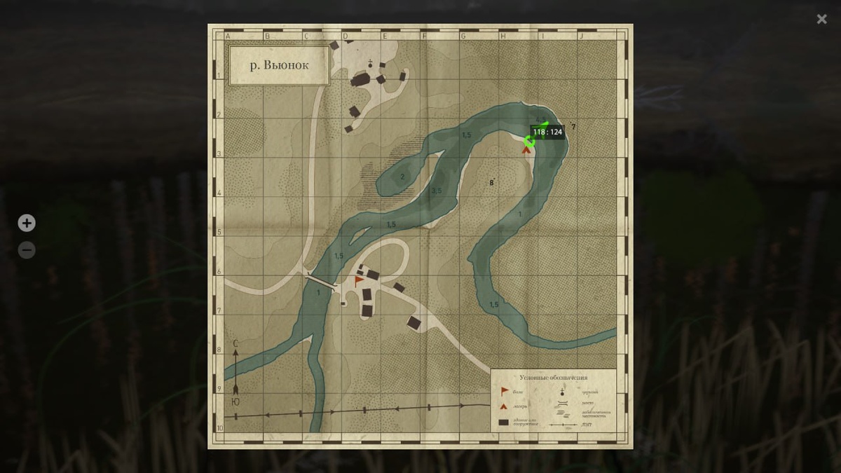 -координаты 118 124