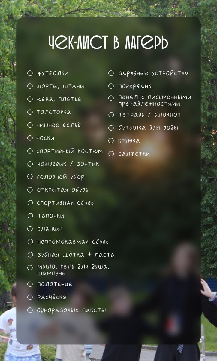 Не успели оглянуться, как уже половина июня прошла🫣 Но не стоит переживать, ведь это лишь значит, что вот-вот в лагеря заедет уже вторая смена! А чтобы пребывание на отдыхе было комфортно, создали для вас чек-лист со списком вещей, которые точно стоит не забыть🙌