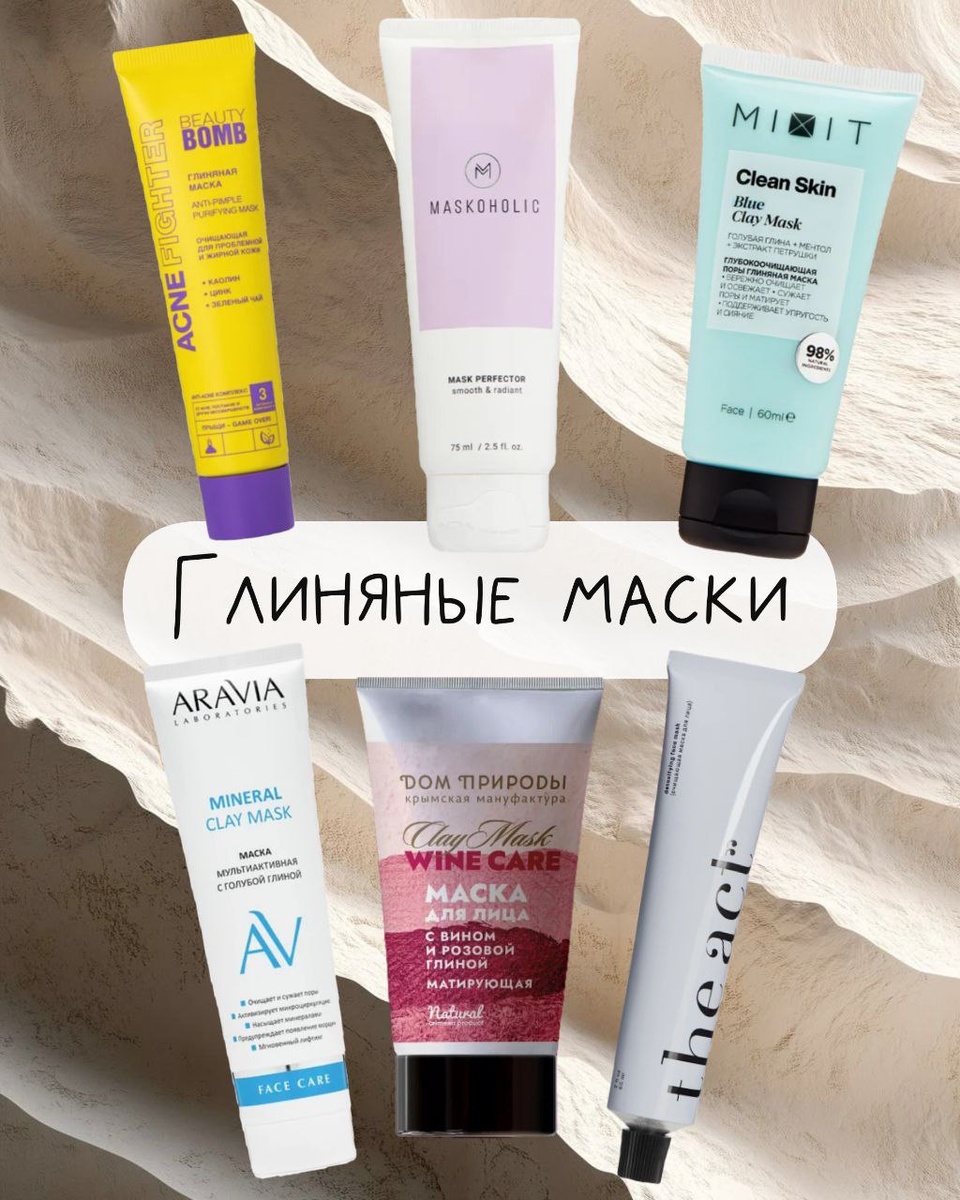 Так давно веду блог, а так и не сделала подборку глиняныех мамочек. Кому-то они заходят, кому то нет Но чтобы они реально работали, важно подобрать ту самую под свою кожу: • Жирной и комбинированной — зелёная и голубая глина • Проблемной — чёрная глина • Сухой и чувствительной — белая и розовая Как сделать маску лучше: • Разводите глину не водой, а тоником или гидролатом — будет в 2 раза полезнее • Для сухой кожи добавьте каплю масла, которое вам по нраву • Не ждите, пока маска засохнет в корку: смывайте, пока чуть влажная Обязательно закрываем после сывороткой или кремом (я и то, и то делаю) • Увлажнение: гиалуронка, алоэ, пантенол • Восстановление: церамиды, масла, ниацинамид • Для жирной кожи: салицилка, цинк, азелаиновая кислота Мои любимчики: 1. Beauty Bomb — мягкая, но эффективная. Кожа довольна и не пересушена 2. Maskoholic — салицилка+алоэ. Чистит, но не сушит 3. Mixit с голубой глиной — ментол и петрушка, освежает и матирует 4. Aravia — как спа-маска: олива, аллантоин, ком