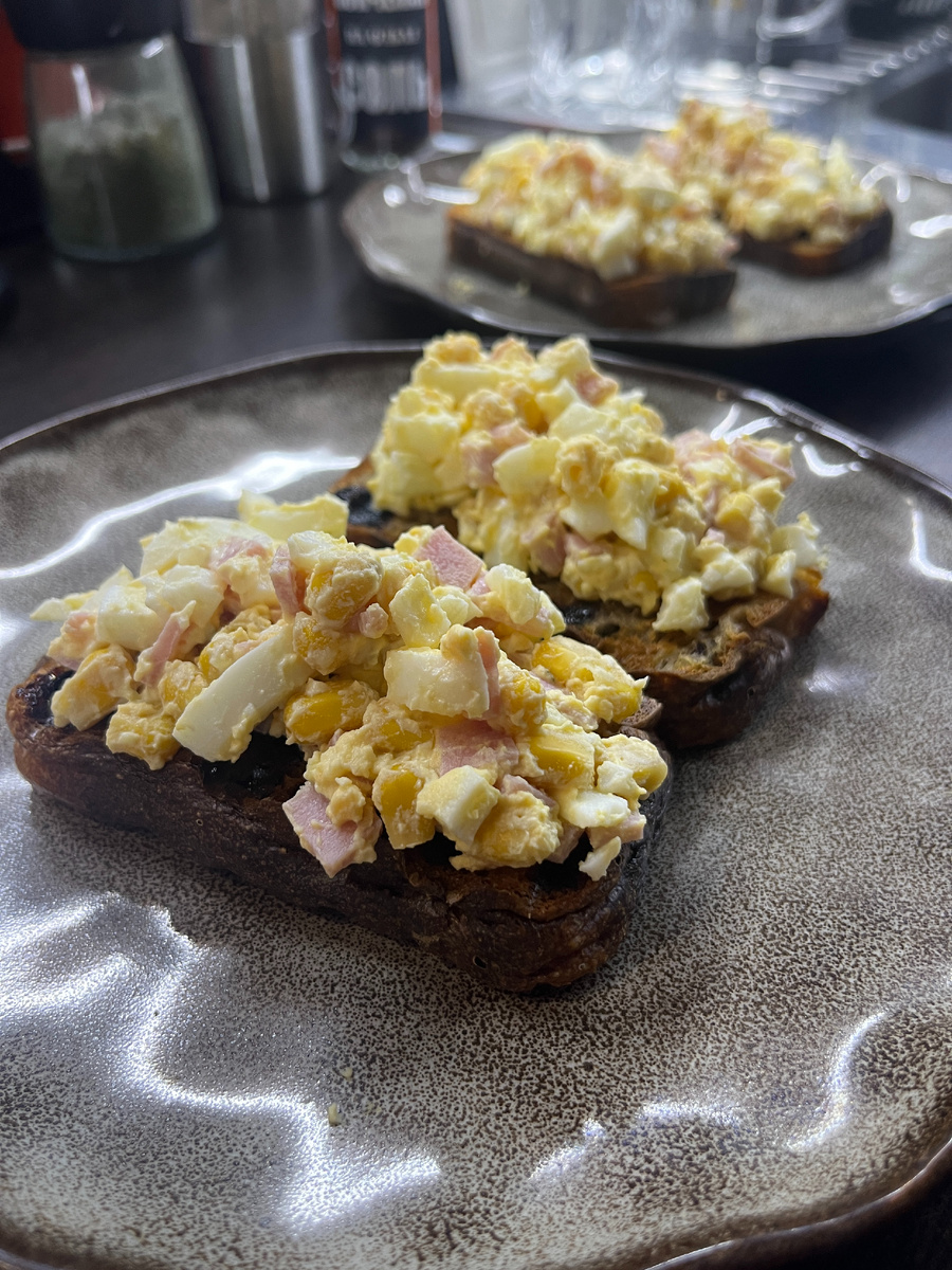 Завтрак с бутербродами — это вкусно. Но если добавить немного фантазии, получится ещё лучше. Сегодня делюсь новым рецептом необычной намазки, которая превратит ваш тост в брускетту, достойную кафе. Что понадобится: Кукуруза — 100 г 2 яйца 1 ч. л. творожного сыра (я использую «Альметте» с солёными огурцами) 2–3 ломтика ветчины или любимой колбасы (можно заменить на консервированный тунец) Хлеб для тостов или багет Как готовить: 1. Отварите яйца. 2. Нарежьте ветчину. 3. Смешайте кукурузу, яйца, ветчину и творожный сыр до однородной массы. 4. Поджарьте хлеб и щедро намажьте готовую смесь. Эту намазку удобно приготовить с вечера — утром останется только намазать её на хлеб. Отличный вариант как для завтрака, так и для подачи гостям в виде мини-брускетт. Получается вкусно, сочно и небанально. Не жирно, но сытно. Попробуйте — вам точно захочется повторить. ❤️ ❤️ ❤️ Забирай подборку >> по ссылке <<, с которой ты перестанешь тратить время у плиты🔥
