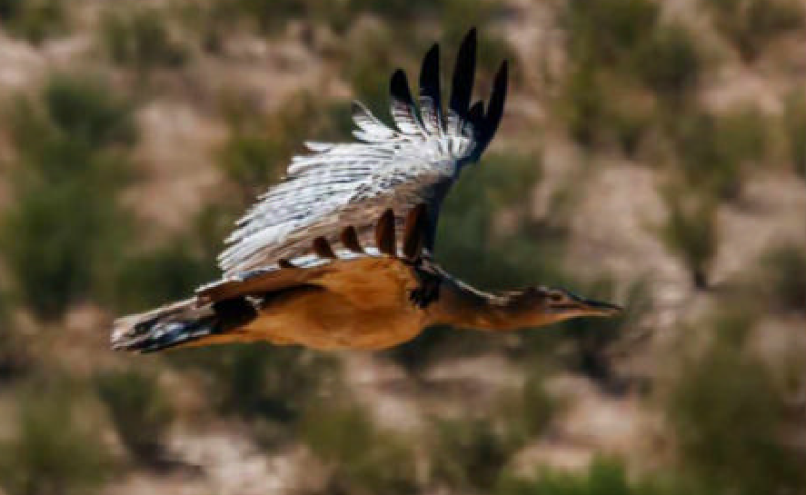 Это зависит от того, имеется ли в виду ширина, высота или вес. Самый большой размах крыльев у странствующего альбатроса. Он может достигать 3.63 метра. Самая высокий — индийский журавль из южной Азии и Австралии, который в высоту достигает 1.8 метра. Самая тяжёлая — африканская большая дрофа; она может весить до 19 килограммов. На фото: африканская большая дрофа летит низко, используя медленные взмахи крыльев. Однако все они меркнут по сравнению с Argentavis magnificens – вымершим хищником, о котором известно по найденным ископаемым, возраст которых 6 миллионов лет. Он весил 70 килограммов и имел размах крыльев до 7 метров. Будучи слишком массивным для того, чтобы взлететь с места, ему приходилось разбегаться по склонам перед началом полёта.