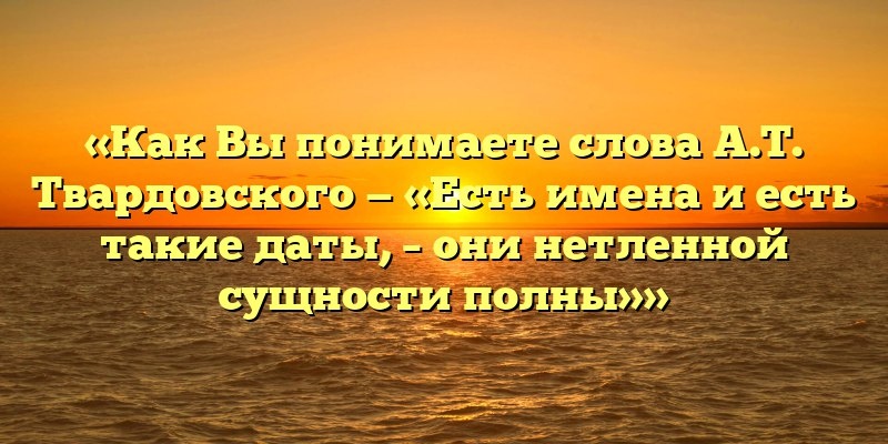 «Как Вы понимаете слова А.Т. Твардовского — «Есть имена и есть такие даты, – они нетленной сущности полны»» 7 лучших сочинений на тему «Как Вы понимаете слова А.Т. Твардовского — «Есть имена и есть такие даты, – они нетленной сущности полны»» Публикуем свежие сочинения 2025 года по теме «Как Вы понимаете слова А.Т. Твардовского — «Есть имена и есть такие даты, – они нетленной сущности полны»». «Как Вы понимаете слова А.Т. Твардовского — «Есть имена и есть такие даты, – они нетленной сущности полны»»: Вариант 1 Как я понимаю слова А.Т. Твардовского: «Есть имена и есть такие даты, – они нетленной сущности полны»? Мне кажется, что это означает, что есть люди и есть события, которые оставляют в нашей памяти глубокий след и становятся частью нашей истории. Это имена и даты, которые мы помним… #Сочинения Подробнее: https://2025.obr.prime-name.ru/literatura/sochineniya/kak-vy-ponimaete-slova-a-t-tvardovskogo-est-imena-i-est-takie-daty-oni-netlennoj-sushhnosti-polny.html