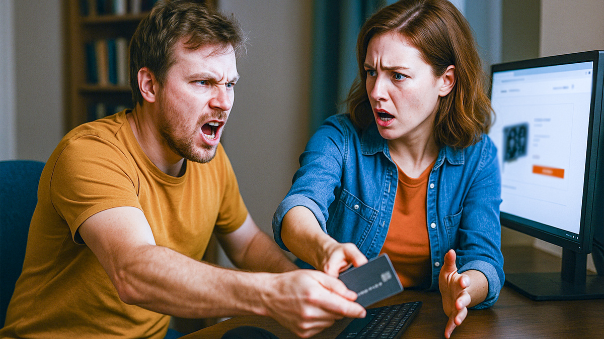 — Деньги общие! Я могу их тратить так, как захочу! — заявил он, защищая карту от ее попыток отобрать.