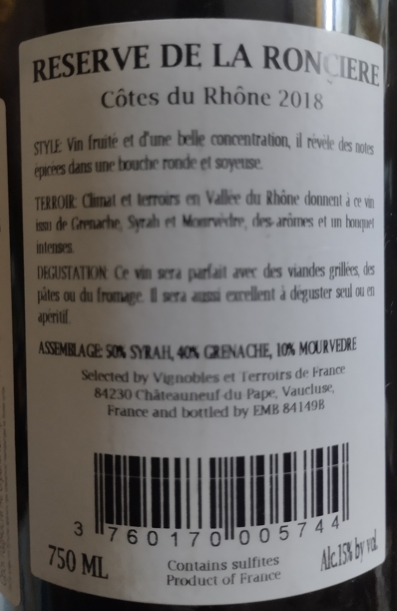Красное сухое вино Réserve de la Roncière Côtes-du-Rhône 2018