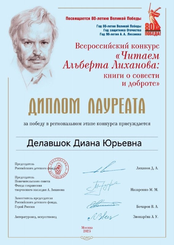 Уважаемые читатели! МБУ «ТМЦБС» с радостью сообщает о вручении Диплома лауреата регионального этапа Всероссийского конкурса «ЧИТАЕМ АЛЬБЕРТА ЛИХАНОВА: книги о совести и доброте» Делавшок Диане Юрьевне. Кроме того, библиотекарю Новосадской сельской библиотеки Кушу Светлане Эдуардовне была вручена Благодарность за активное участие в конкурсе. Поздравляем всех награждённых с заслуженными успехами! Мы ценим ваши усилия и стремление к просвещению. #новосадскаябиблиотека #тмцбс #культуратахтамукай