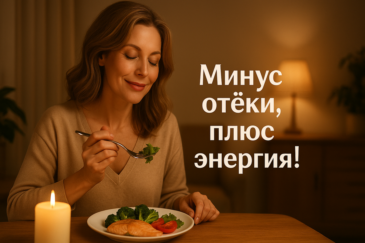 С возрастом наш организм меняется. После 40 метаболизм постепенно замедляется: калории сжигаются менее охотно, а гормональные колебания (особенно у женщин) влияют на аппетит, накопление жира, появление отёков. Полноценный сбалансированный ужин — не только способ избежать ночного голода и тяги к перекусам, но и залог спокойного сна, стабильности сахара в крови и нормальной работы обмена веществ. Ошибки на ужин (тяжёлая, жареная или солёная пища, избыток углеводов, очень поздний приём еды) провоцируют задержку жидкости, утренние отеки, набор веса и даже ухудшение настроения. Что выбирать: Чего избегать: Размер порции и время: Питьевой режим: Примеры полезных продуктов для ужина: Творог, рыба и курица (отварные/запечённые), яйца, брокколи, цветная капуста, кефир, йогурты без добавок, тушёные овощи 1. Творожный ПП-салат с овощами — 100 г нежирного творога