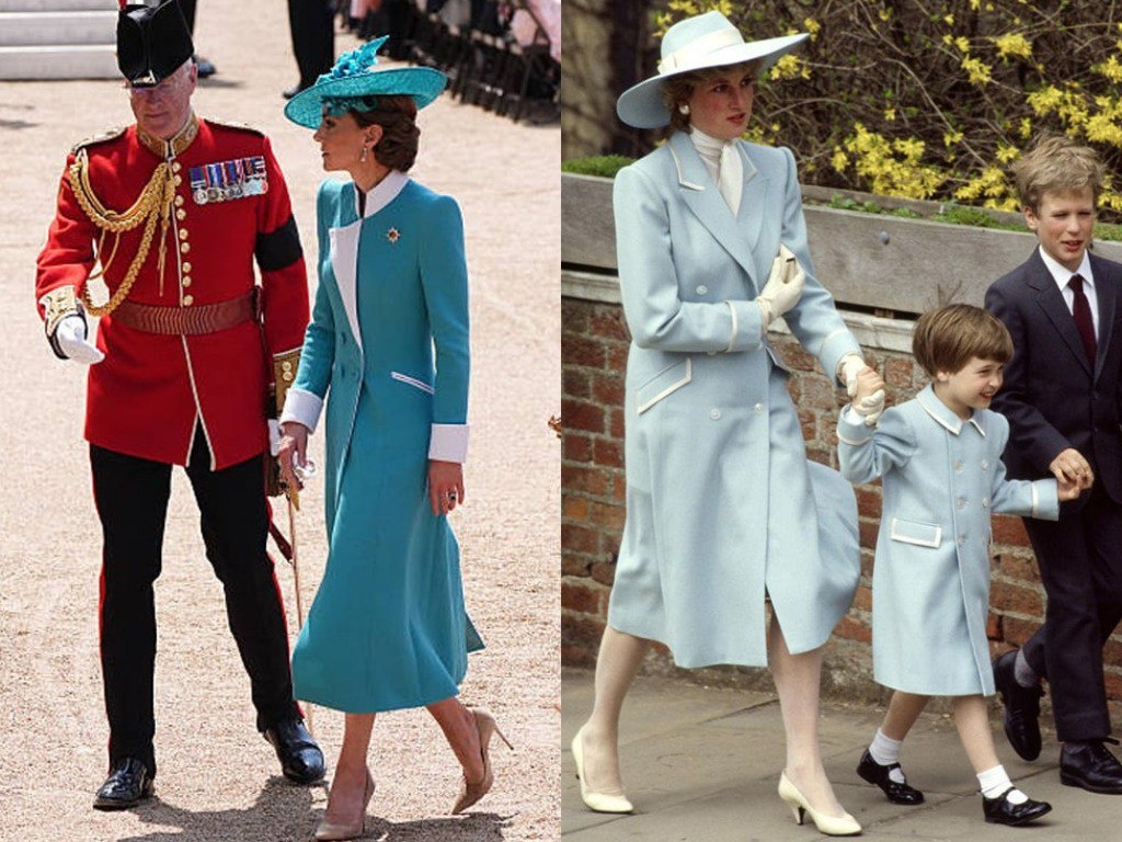 Не опять, а снова: Кейт Миддлтон появилась на публике в голубом платье и шляпке, повторив образ принцессы Дианы