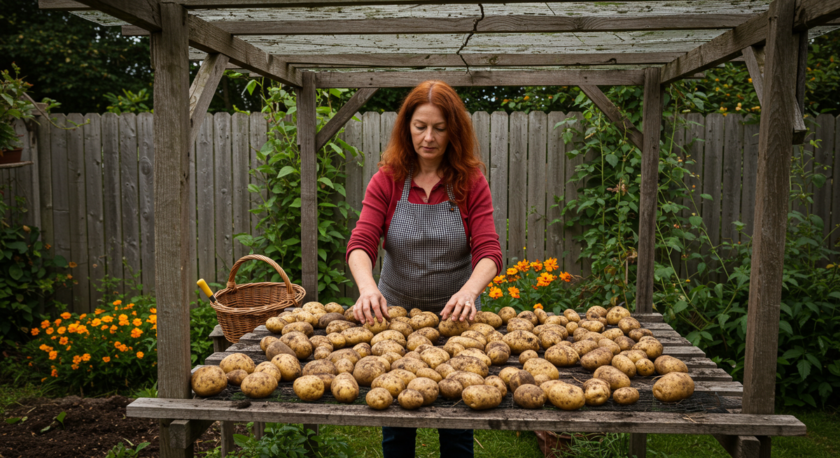 Вчера соседка Мария Петровна пожаловалась: «Татьяна, опять весь ранний картофель испортился за две недели! Что я только не делаю...» А я вспомнила себя двадцать лет назад — тогда и я теряла половину урожая. Но годы научили меня секретам, которыми хочу поделиться с вами, дорогие дачники. Раньше я думала: выкопал картошку — и сразу в подвал! Какое же это было заблуждение! Свежевыкопанные клубни обязательно должны «подышать» и подсохнуть. Теперь я всегда раскладываю их под навесом на 3-4 часа, но не на солнце — оно делает картофель зелёным и горьким. Помню, как однажды торопилась перед дождём и засыпала мокрые клубни в ящики. Через неделю половина сгнила! С тех пор усвоила правило: лучше день подождать хорошей погоды, чем потерять весь урожай. Время имеет значение. Ранний картофель копаю только в сухую погоду, лучше утром, когда роса уже сошла. Если земля липнет к лопате — откладываю на день-два. Деликатность — наше всё. Раньше я бросала клубни в ведро как попало. Потом заметила: там, где