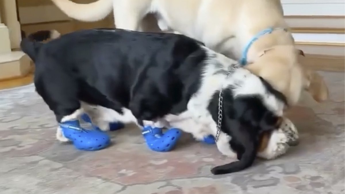 Лето — время солнца, отпусков и безудержного веселья. Этому жаркому сезону радуются не только люди, но и питомцы. Ведь на улице становится теплее, а значит, и прогулки — дольше. А если повезет, можно и на пляж выбраться. Именно туда и решила пойти хозяйка, взяв своего бассет-хаунда Лампи. Но для того, чтобы выбраться на пляж, нужно было собрать сумку со всем необходимым. Именно тогда владелица наткнулась на забавные шлепанцы Лампи, которые решила примерить на питомца. Шлепанцы бассета — это не прихоть хозяйки, а необходимость. Ведь в жаркую погоду песок, камни, асфальт и любая другая поверхность, раскаляются до такой степени, что могут обжечь нежные подушечки лап питомцев. В качестве альтернативы обуви можно выбирать подходящее время для прогулок с собакой — раннее утро и вечер после захода солнца. Только так можно избежать ожогов на лапках питомца.