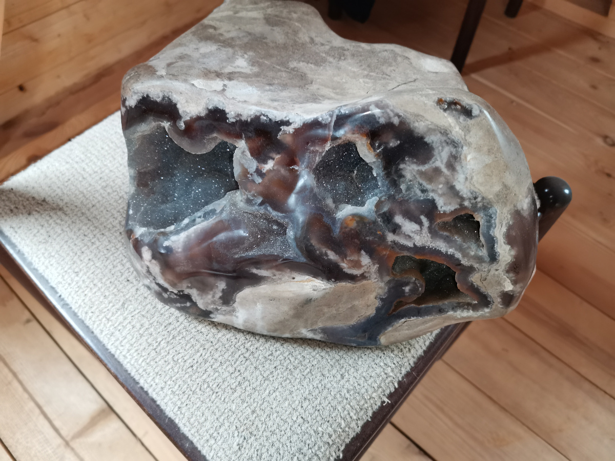 Друзья , всем привет. Смотрите какой гигант появился в моей коллекции. Восемь полостей разного халцедона и горного хрусталя. Просто шикарный великан. Ну вроде все , восторг свой описал. Камень найден на юге подмосковья . Он уже проскакивал на канале . Вот подробные фото , смотрите : В живую он намного круче. Оцените пожалуйста камушек))))