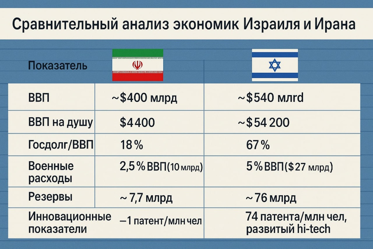 Экономики Ирана и Израиля демонстрируют кардинально разную структуру, потенциал и уровень устойчивости. На фоне геополитического напряжения особенно важно понимать фундаментальные различия, которые определяют стратегические возможности сторон.