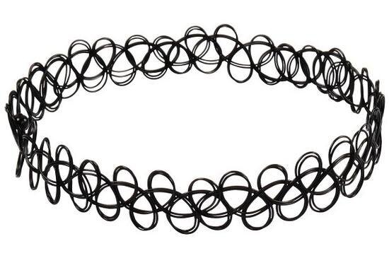 Тату-чокер: тип украшения, который изготовлен из тонкой лески, в виде разных ажурных плетений. Чаще всего аксессуар делают именно черного цвета, и молодые девушки активно используют его в своем образе, надевая на шею вместо цепочек. Тату-чокер обычно хорошо смотрится в сочетании с легкими платьями, с пышными юбками и со стилем тамблер.