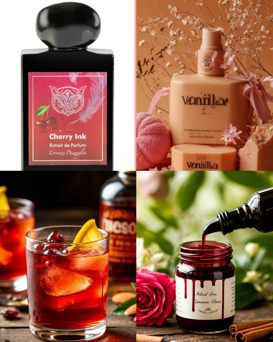 Вишня вихрем проносится мимо буквально в первые пару минут и бесследно исчезает. Поэтому для меня остаётся название аромата. От начала до конца это парфюм про чернила. Сначала чуть вишневые, далее перечно-винные с щепоткой корицы и в заключении сладковатые за счёт бобов тонка и ванили на древесной подложке. Сложный нишевый аромат со слегка странноватым звучанием. Этим сочетанием вишня+чернила и общим настроением Cherry Ink перекликается с Purple Heart V 5 Map of the Heart.