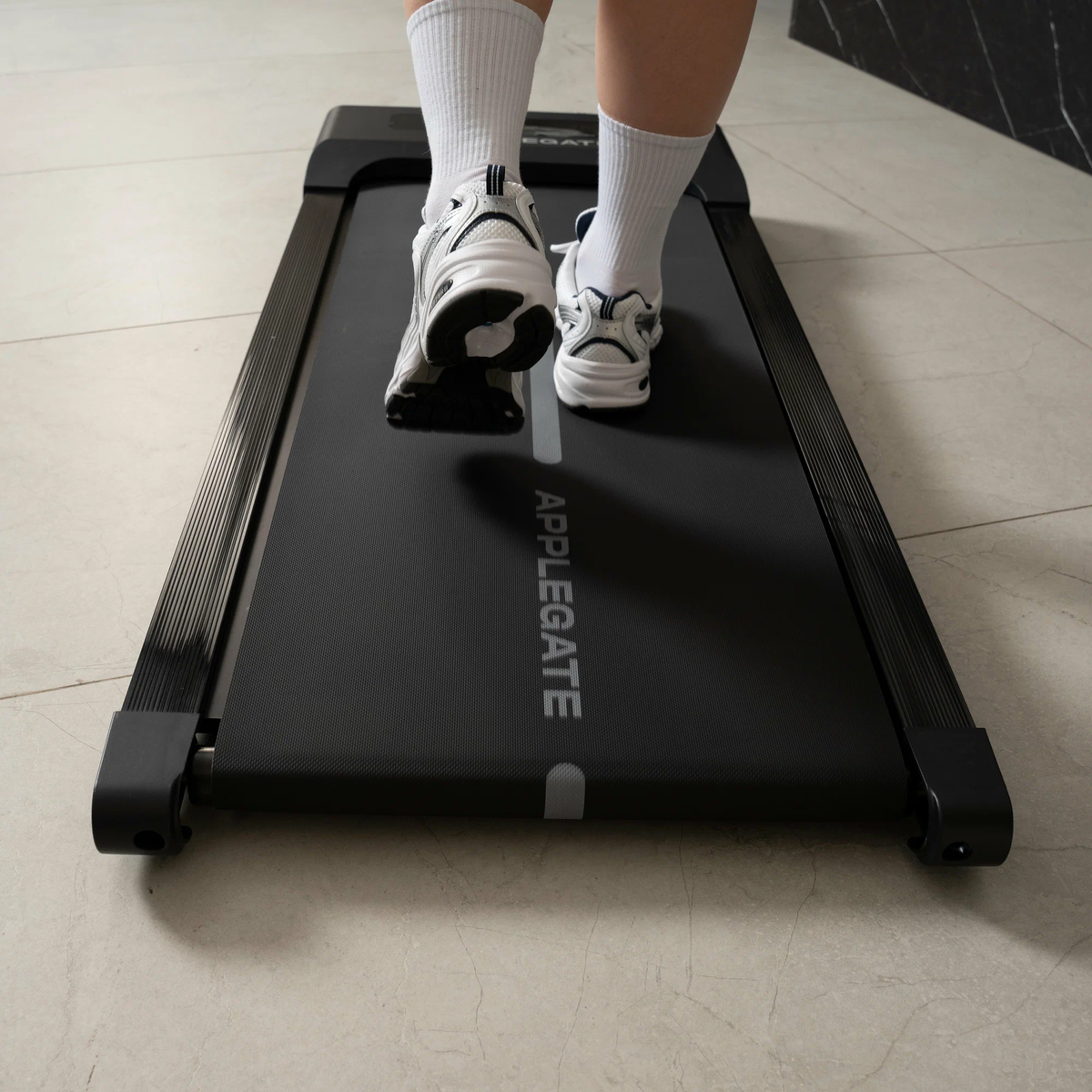 Откровенно: работать из дома — это мечта и пытка одновременно. Удобно, тепло, можно в пижаме. Но к вечеру — квадратная спина, затекшие ноги и шагомер, грустно показывающий 143 шага за день. Уловка “встану и потянусь через час” работает ровно один раз. На второй уже лень. Именно так я пришла к идее беговой дорожки под стол. Я пересмотрела десятки обзоров и форумов, но в итоге выбрала Applegate HomeRun. Почему? Рассказываю по пунктам. Applegate HomeRun — это компактная беговая дорожка, которая помещается под рабочий стол, кровать или диван. Она лёгкая, тихая, не требует сборки, и не выглядит как спортзал посреди квартиры. Сначала было странно. Я поставила ноутбук на подъёмный стол (кстати, вот ссылка на мой стол с регулировкой высоты - https://market.yandex.ru/cc/6zvz2A, это отдельная любовь), встала на дорожку — и пошла. Медленно. Работать ногами и руками одновременно оказалось не так просто. Но спустя пару дней мой мозг понял, что ходить — это не марафон, а фоновая активность. Теперь я