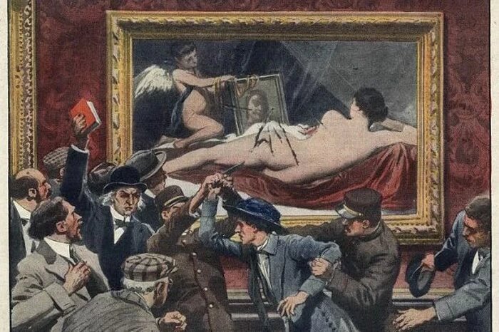 Мэри Ричардсон достала острый мясницкий нож и напала на шедевр Диего Веласкеса, располосовав прекрасную Венеру. Ее безупречные нежные бедра и спина были изуродованы безжалостными разрезами. «Эта обнаженная женщина, лежащая спиной к зрителю, демонстрирует идею о том, что женщина должна быть только обнаженным, лишенным мыслей предметом красоты», «Я пыталась уничтожить картину самой красивой женщины в мифологии в знак протеста против ареста госпожи Панкхерст, самой прекрасной личности в современной истории», — объяснила суфражистка свои действия на допросе. Это случилось 10 марта 1914 года в Национальной галерее Лондона. Мэри Ричардсон, посягнувшая на шедевр Диего Веласкеса, была решительной активисткой, выступавшей за права женщин. К этому отчаянному шагу ее подтолкнул арест и последующее тюремное заключение основательницы движения за права женщин Эммелин Панкхерст. Мэри Ричардсон была возмущена подобным обращением со столь яркой фигурой, и эта ярость вылилась в протест. Направившись в Н