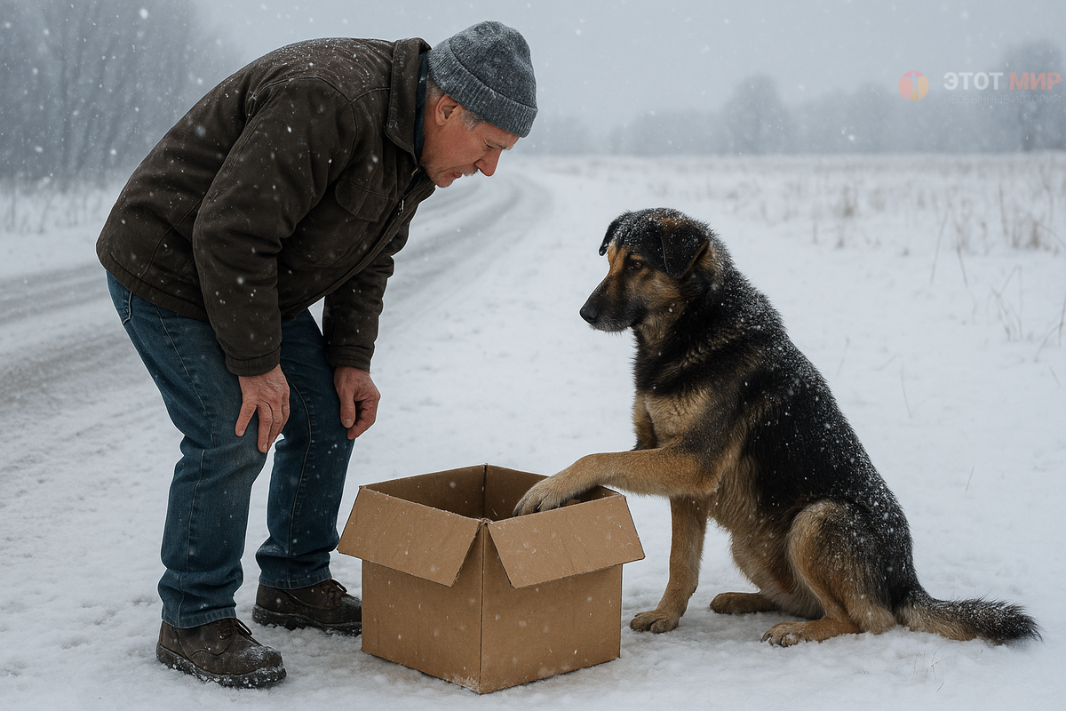 Собака часами сидела на снегу рядом с коробкой. То, что обнаружил мужчина в коробке, — потрясло!