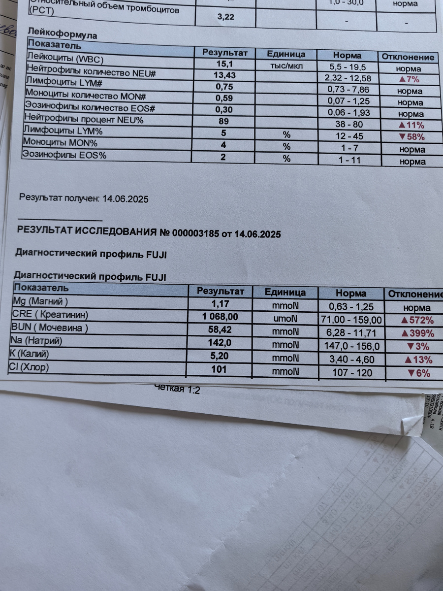 Я даже не знаю, как описать сегодняшний день. Эмоциональная истощенность. Вчера было так Только недавно вышла статья про вчера, про субботу, где слишком малый темп улучшений не позволил выписать кота, как планировали. Хотела её на утро поставить, но тут такие новости, забыла. Сегодня мы надеялись, да что лукавить, почти были уверены, что будет улучшение. Нет. Состояние внешнее такое же. А вот анализы.... Хуже. Анализы от 14. 06 От 15.06 Снова вырос креатинин. Плюс 100. Мочевина упала, но это вроде не так важно. Не ест. Не пьёт. Постоянно подтекает моча. Это все я узнала, когда днём мне позвонили из клиники. Хотя вообще мы планировали (опять) забрать кота в привычную обстановку и носить на капельницы в клинику, благо она у нас через дорогу. Острый вопрос - кормления. Не ест. И не менее острый - мочи. Она подтекает, но... Это не полноценный отток. В общем, вместо обсуждения перевода на частично домашнее лечение + дневные капельницы, мы обсуждали... Да черт его знает, что.