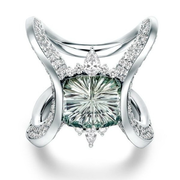 Аквамарин фантазийной огранки от John Dyer & Co к кольце от Джеффа Эпплинга.