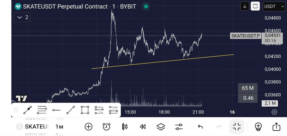 Добрый вечер! В данный момент наблюдаю за тремя монетами. #SKATEUSDT Новая монетка с хорошим объёмом. С низу хороший явный уровень, с верху все смазано, явного уровня нет. Можно понаблюдать, если будет пробивать уровень поддержки то буду искать твх. #TUSDT В монету влили объем, за счёт чего она вылетела. Сейчас рисует шортовую наклонку, если будет третье касание, проторговка то можно поискать твх в пробой наклонки. #SQDUSDT Это больше так для понаблюдать, объемы очень маленькие, а так скорее всего будет пролив. #сетапы