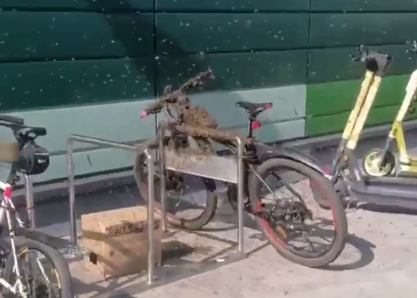 Пчелы облюбовали велосипед у гипермаркета в Чижовке. Очевидцы вызвали спасателей