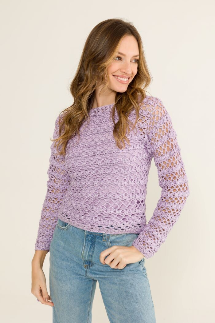 Когда освоены базовые петли, то хочется уже что-то связать; какую-нибудь вещь себе. И начинать можно именно с этой кофточки. Ведь она в вязании одна из самых простых. Перед и спинка -- прямоугольники без вывязанных пройм и горловины. Только в рукавах имеются скосы (расширения) кверху. Размер: 38 (европейский) Вам потребуется: 3 мотка пряжи (100% акрил; 270 м/100 гр.); крючок № 3. Плотность вязания: 10х10 см = 24 петли и 26 рядов. Описание. Перед и спинка сначала вяжутся одновременно круговыми рядами. Сделайте цепочку из 160 в.п. и сомкните в кольцо. Далее вяжите основным узором, повторяя раппорт вязания между ** 32 раза. Через 26 см от начала работы разделите вязание на 2 части (перед и спинку) и продолжайте работу поворотными рядами; т. е. Свяжите спинку, затем перед. Через 42 см от начала работы отрежьте нить. Рукава. Сделайте цепочку из 67 в.п. и вяжите основным узором по схеме, повторяя раппорт 13 раз между **, а также вяжите петли вначале (до раппорта) и конце ряда (после раппорт
