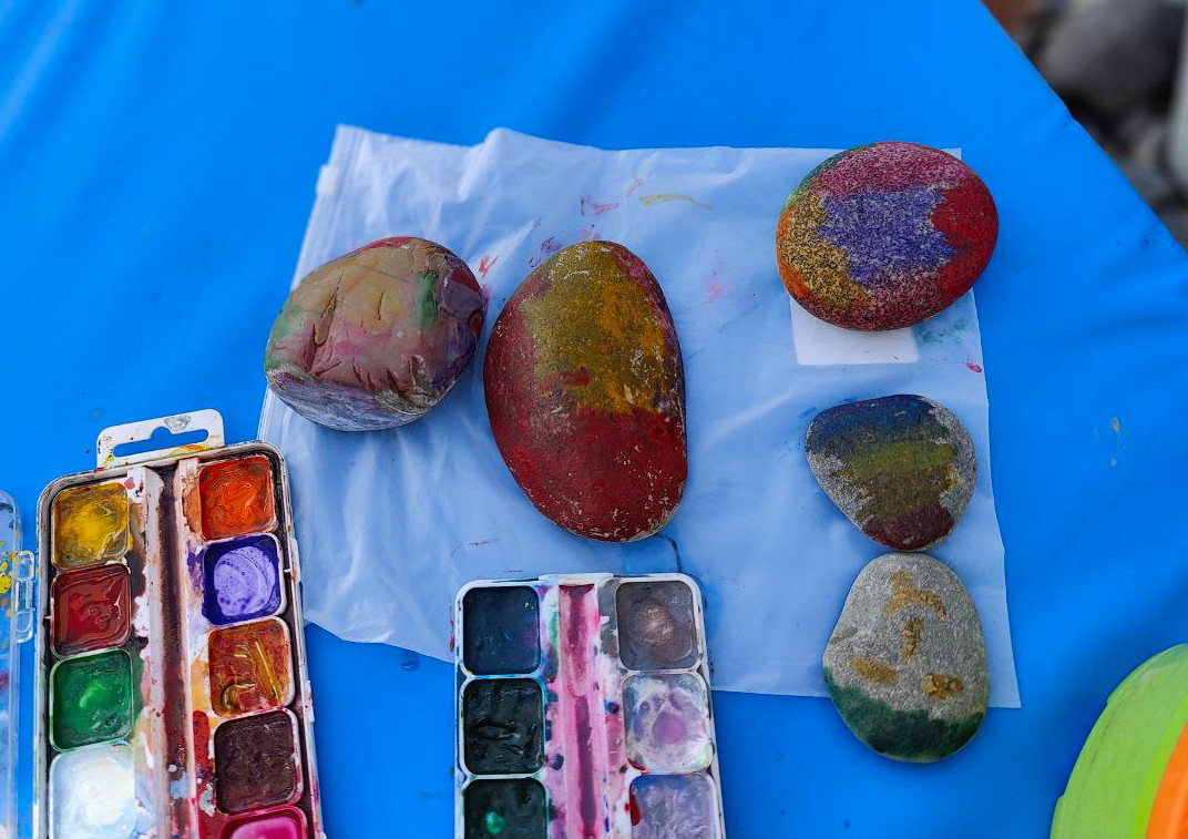 Если вы едете на море на песочный пляж, вопрос о том, чем занять ребенка обычно не стоит, т.к. дети могут долго увлеченно играть с песком, но если пляж галечный, то становиться сложнее. Вот несколько вариантов чем я смогла надолго увлечь свою 4х-летнюю дочь на галечном пляже: 1. Рисование красками на камнях (мы из дома взяли акварельные краски и пару кисточек) - это топ, дочка могла целый час ежедневно этим заниматься. 2. Постройка башни/дворца из камней. 3. Игра на вытеснение воды из ведра - налить воду в ведро на 2/3 и по очереди бросать камни в ведро, победил тот, у кого первого вода выйдет за пределы ведра.