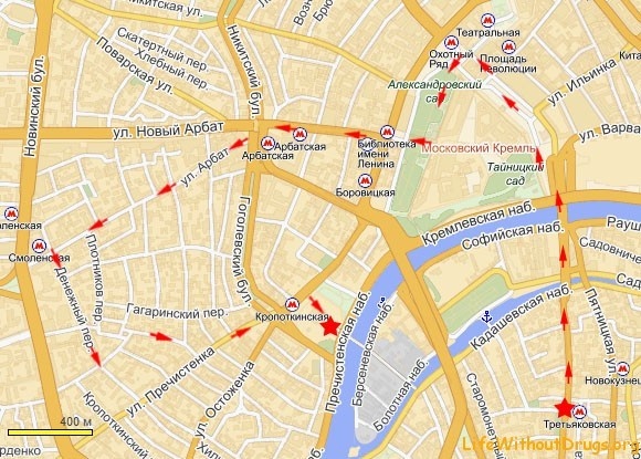 Маршрут нашей прогулки пешком по Москве пройдет по старинным улицам и площадям столицы России: Большая Ордынка, Васильевский спуск, Красная площадь, Александровский сад, улица Воздвиженка, Арбат, Денежный переулок, Пречистенка.