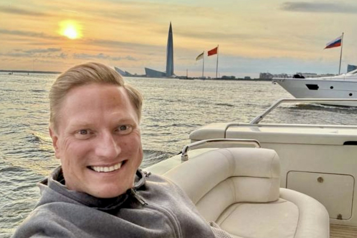 На снимке, опубликованном в соцсетях, основатель компании Maer расслабленно позирует на борту роскошной яхты. Плавно поднимающийся над горизонтом флаг России,