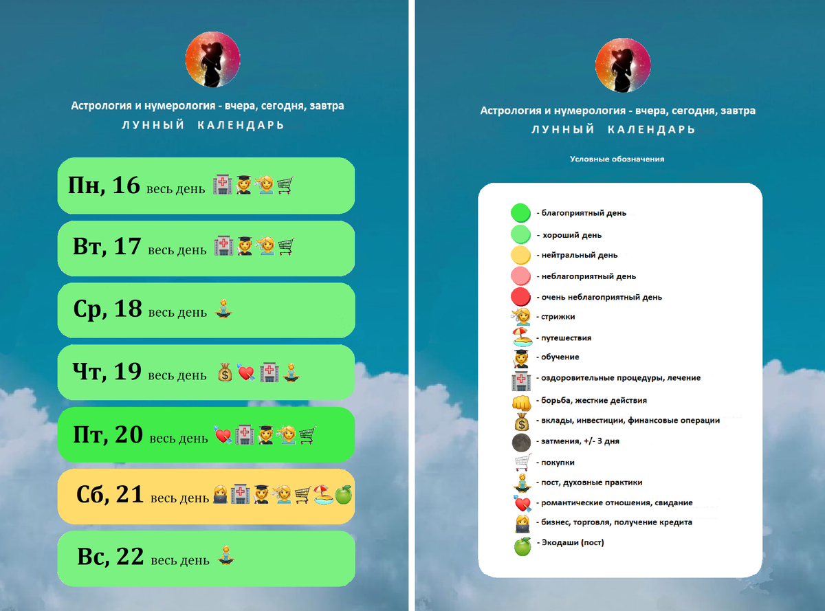 ✨16 июня, понедельник, 20 л.с. до 13:01, после – 21 л.с.: