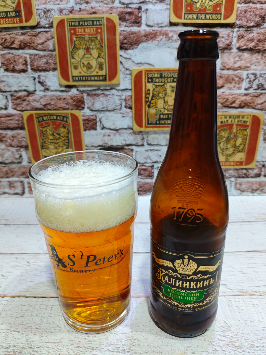 Калинкинъ — качество вне времени. Там же на сайте можно прочитать презентацию Богемского Пильзнера: Классическое светлое пиво низового брожения, сваренное в чешском стиле. Насыщенный солодовый вкус и благородная горчинка делают пиво мягким и сбалансированным.